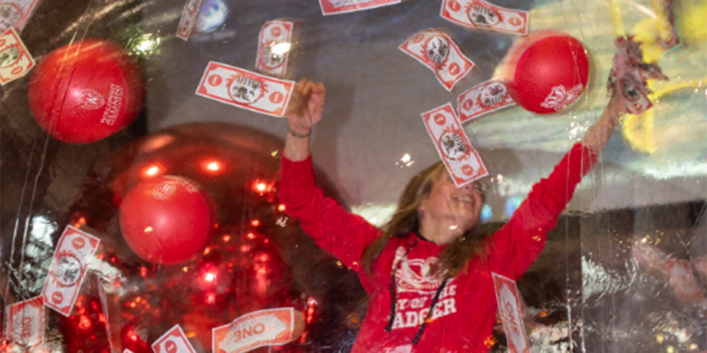 Alumni, students, and friends of UW-Madison grabbed "Bucky Bucks" inside the Cash Dome at Union South to exchange for real dollars to help fund the university's greatest needs